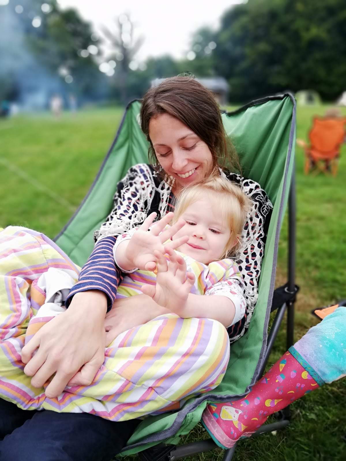 Ditch the routine. The light evenings and constant buzz of noise around a campsite doesn’t create the ideal sleep conditions for small children. Rather than worry about keeping to our normal nap and bedtime routines (to be honest, bedtime is really the only one we’re pretty strict on), we relaxed the rules and went with the flow. The Not So Tiny One napped in the pram and when it came to bedtime, we were guided by the girls rather than putting them down at their usual time. Our whole family unfortunately suffers from FOMO so this did mean that both girls were up way past their bedtimes but once hubby and I had accepted this fact, it actually made for some really enjoyable evenings (much more enjoyable than spending hours in a hot tent fighting to get children that don’t want to sleep, to sleep).