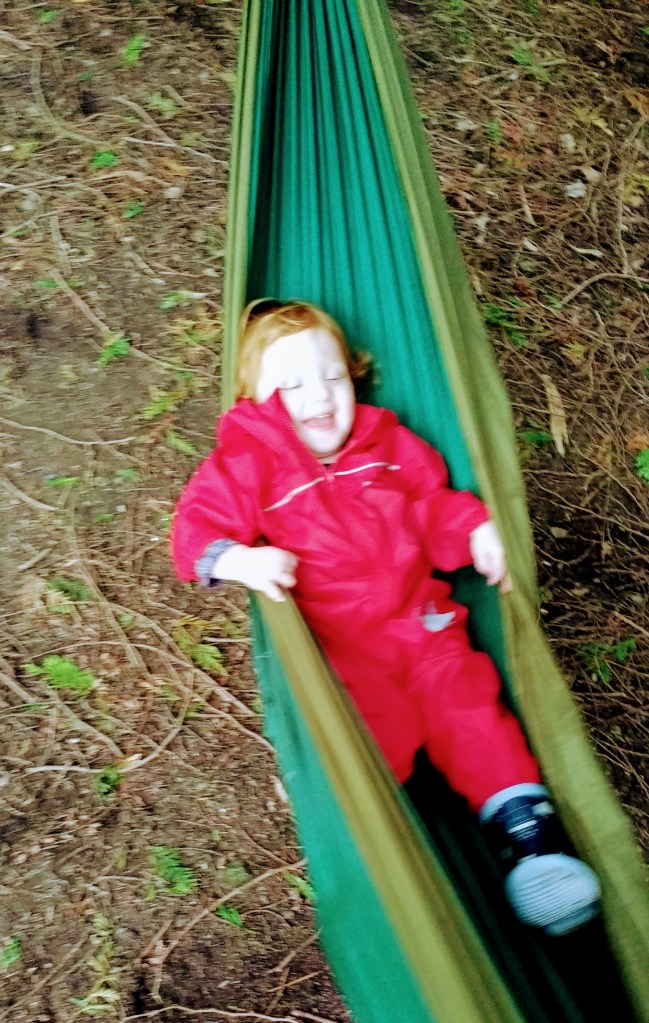 We then had fun exploring some of the apparatus that was dotted around the garden – a swing, a rope ladder and a hammock, in which she was thoroughly entertained as she discovered she could swing herself from side to side. There was also an opportunity for tree climbing, which under normal circumstances I wouldn’t have considered. She has oodles of confidence but like all children her age, she also has zero understanding of consequence so I sometimes feel like my protective nature can hold her back. Within the Forest School environment, I felt more comfortable allowing her to explore independently and was super proud (as was she) when she climbed into the nook of the tree and smiled back at me.