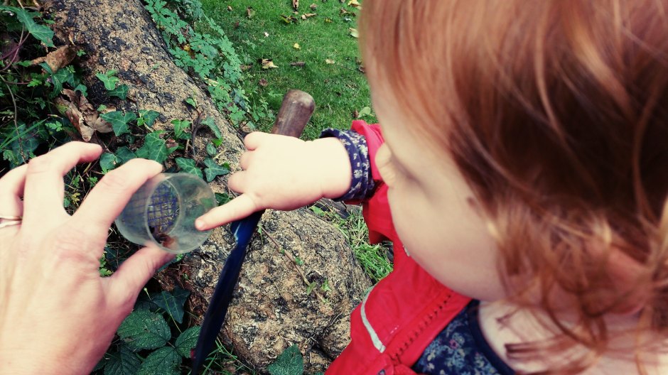 The Not So Tiny One was then keen to do a spot of bug hunting, where we met a very speedy centipede, some woodlice and plenty of her little ant buddies. She loved tipping over logs and digging around in the mud and was fascinated when we looked at the centipede’s legs under a magnifying glass.